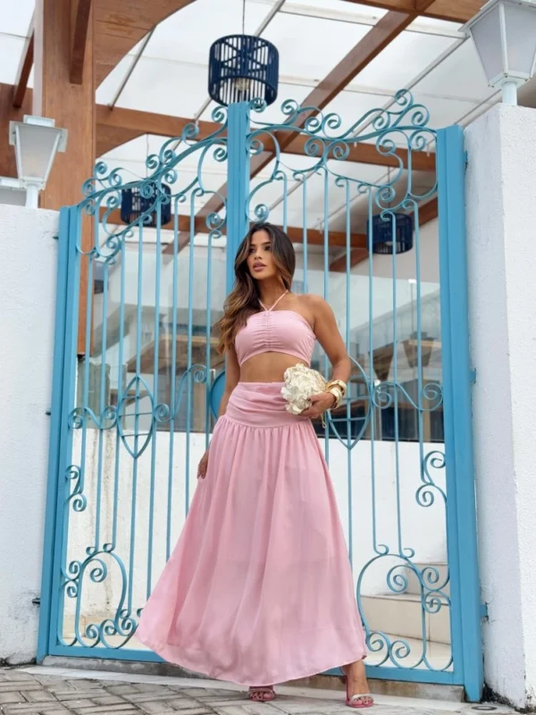 ? Cinto incluso, no mesmo tecido e cor do short saia